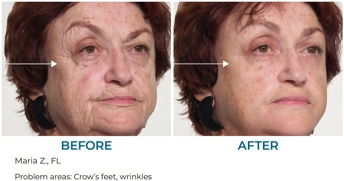 decrease in the appearance of crow’s feet & wrinkles surrounding the eyes*